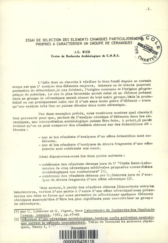 Essai de sélection des éléments chimiques particulièrement propres à caractériser un groupe de céramiques
