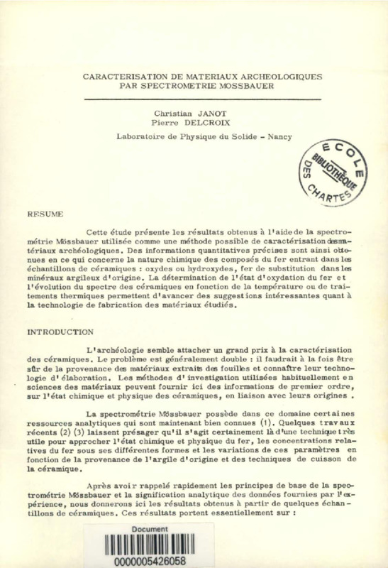 Caractérisation de matériaux archéologiques par spectrométrie Mossbauer