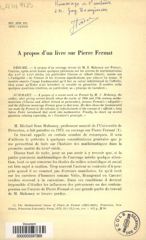 A propos d'un livre sur Pierre Fermat