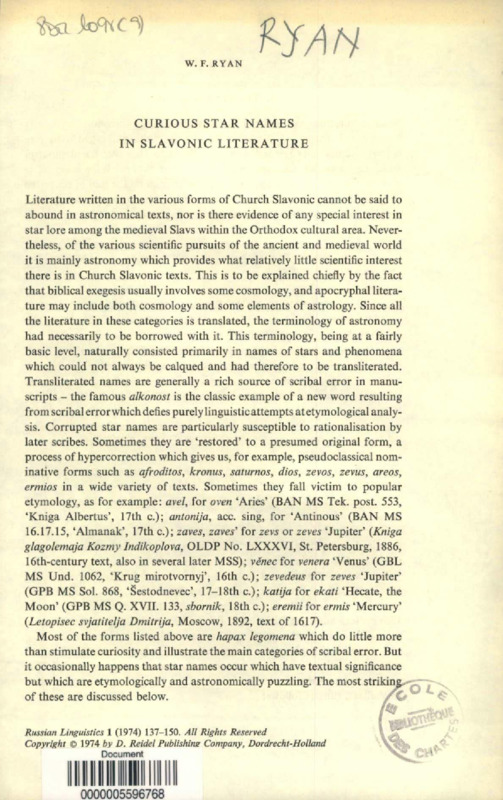 Curious Star Names in Slavonic Literature