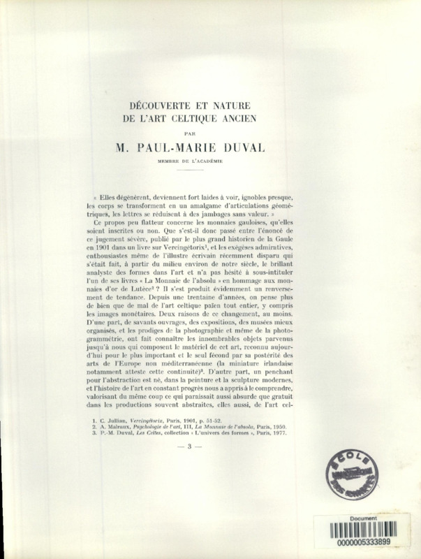Découverte et nature de l'art celtique ancien : lecture faite en la séance annuelle des prix du 25 novembre 1977