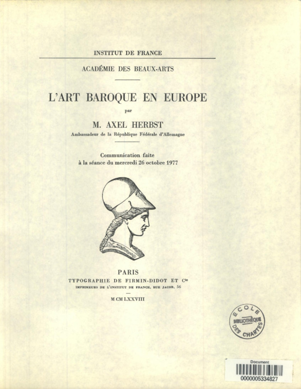 L'art baroque en Europe : communication faite à la séance du mercredi 26 octobre 1977