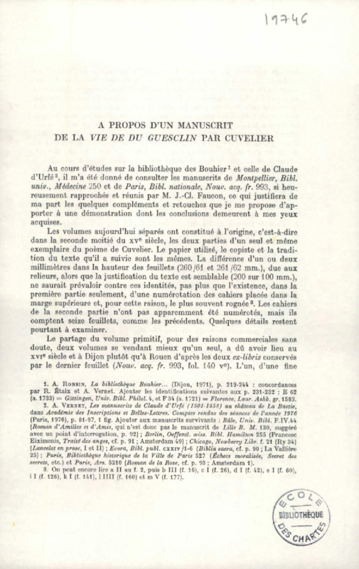 La division de la vulgate latine en chapitres dans l'édition parisienne du XIIIe siècle