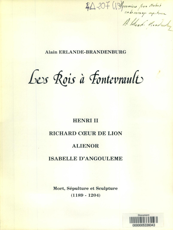 Les Rois à Fontevrault : Henri II, Richard Cœur de Lion, Aliénor, Isabelle d'Angoulême mort, sépulture et sculpture 1189-1204 [exposition, Centre culturel de l'Ouest, Fontevrault, 1979]