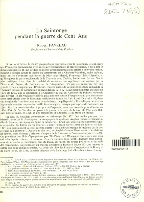 La Saintonge pendant la guerre de Cent Ans