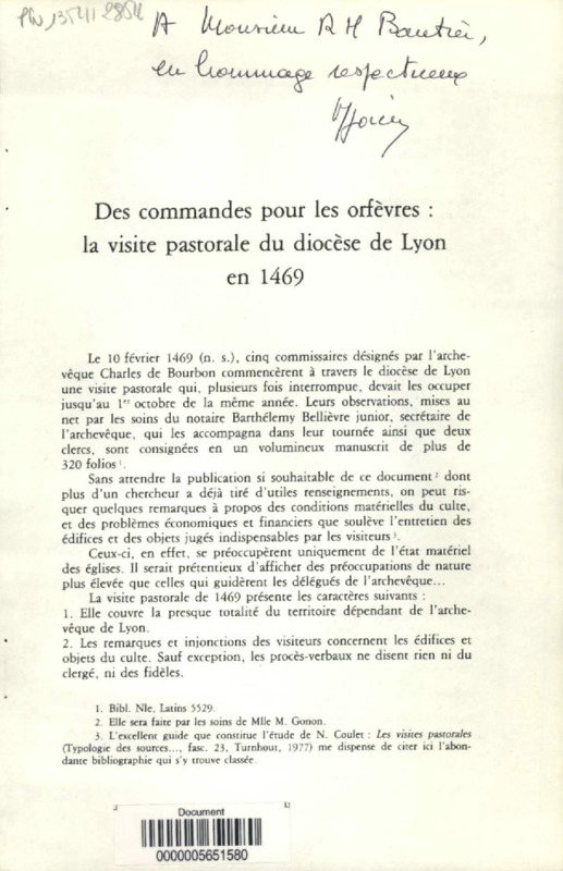 Des commandes pour les orfèvres : la visite pastorale du diocèse de Lyon en 1469
