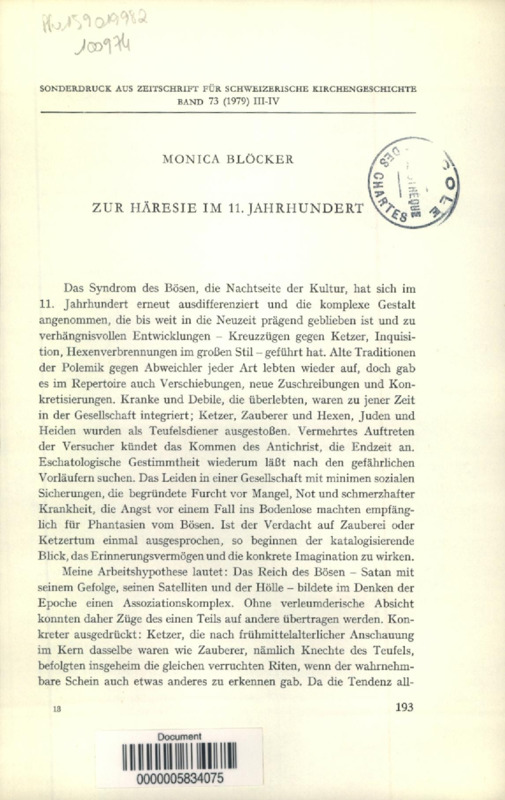 Zur Hâresie im 11.Jahrhundert