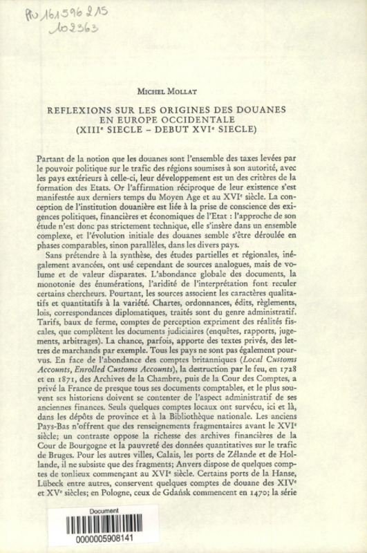 Réflexions sur les origines des douanes en Europe occidentale, XIIIe siècle-début XVIe siècle