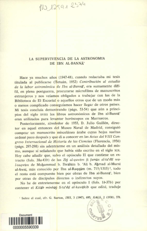 La supervivencia de la astronomia de Ibn Al-Bnna