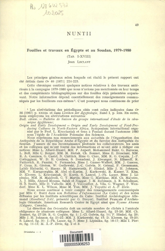 Fouilles et travaux en Egypte et au Soudan, 1979-1980 : Tab. I-XVIII