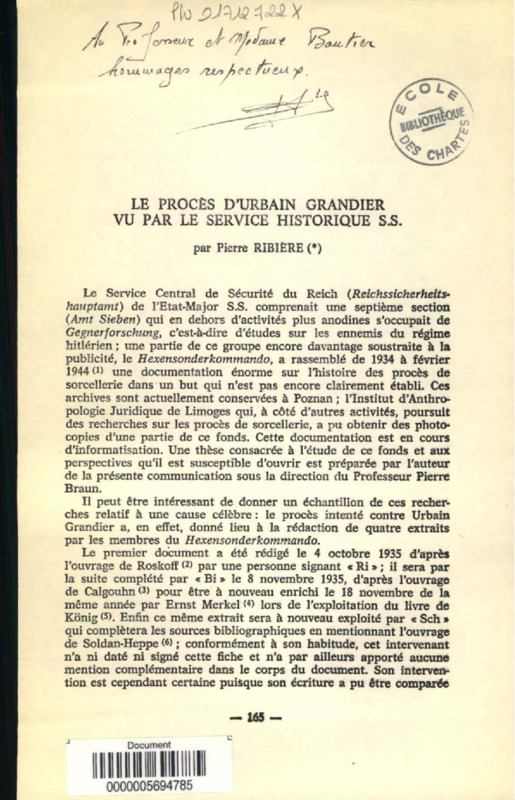 Le Procès d'Urbain Grandier vu par le service historique S.S