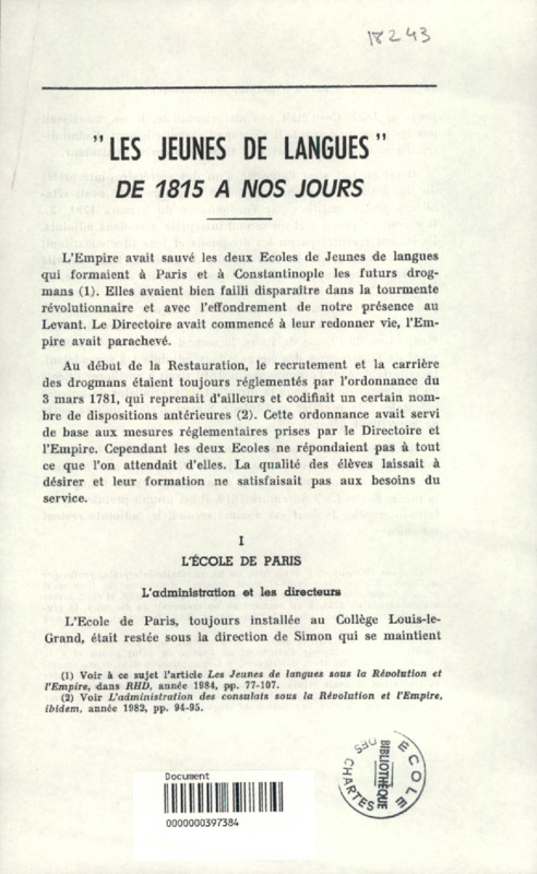 "Les jeunes de langues" de 1815 à nos jours