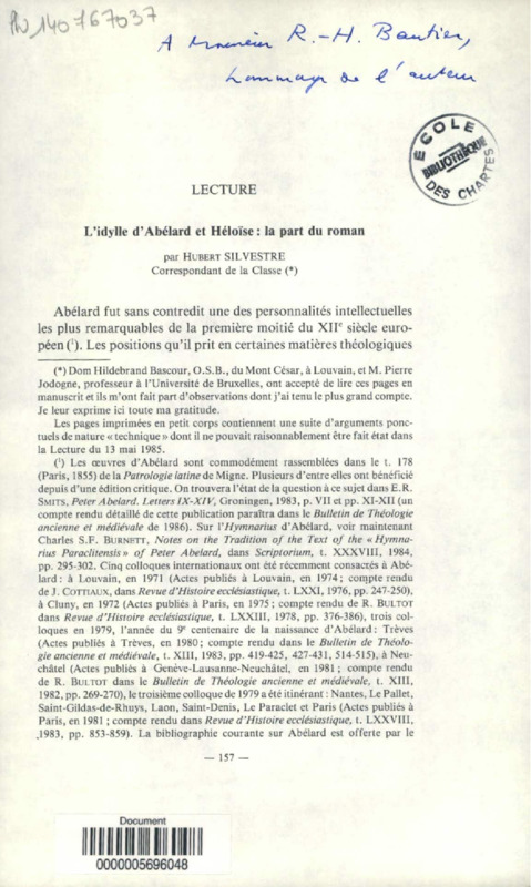 L'idylle d'Abélard et Héloïse : la part du roman