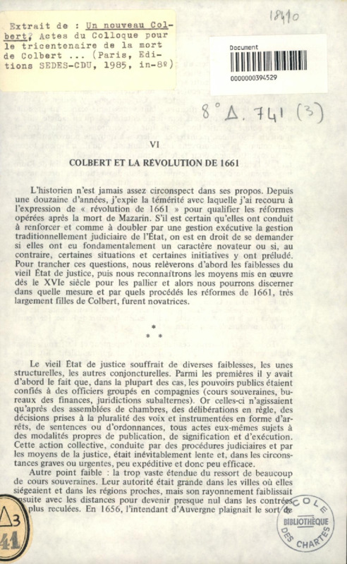 Colbert et la révolution de 1661