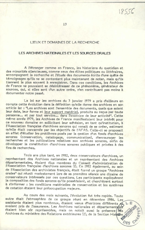 Les Archives nationales et les sources orales