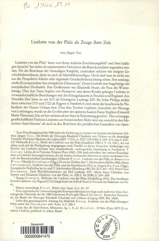 Liselotte von der Pfalz als Zeuge ihrer Zeit