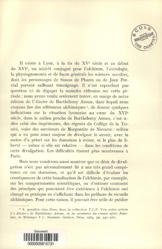 Banalisation de l'alchimie à Lyon au milieu du XVIe siècle, et contre-attaque parisienne