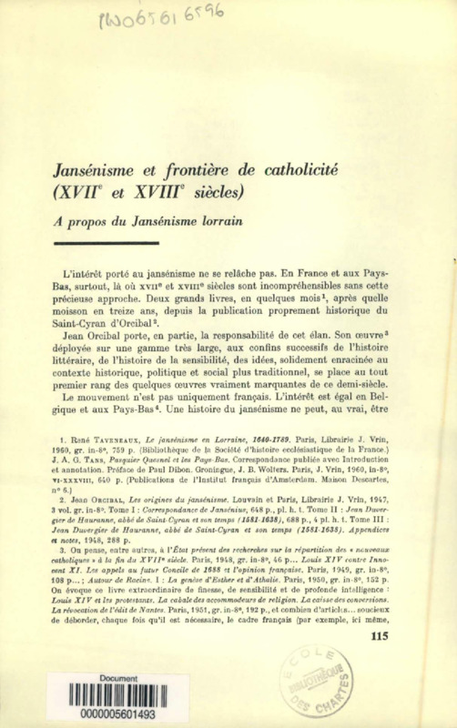 Jansénisme et frontière de catholicité, XVIIe et XVIIIe siècles : à propos du Jansénisme lorrain