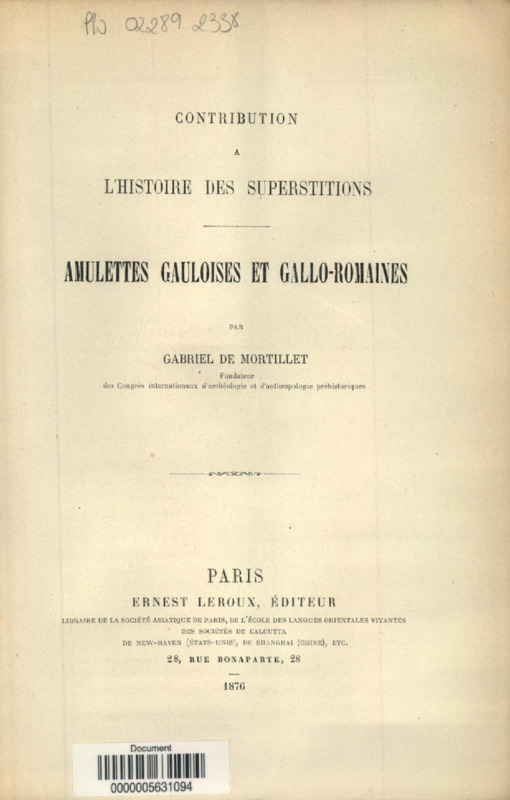 Contribution à l'histoire des superstitions : amulettes gauloises et gallo-romaines