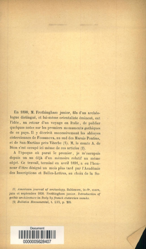 Les premiers monuments gothiques d'Italie : A propos des articles de M.Frothingham junior