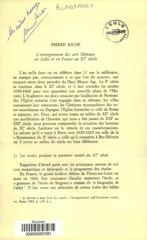 L'enseignement des arts libéraux en Italie et en France au XIe siècle