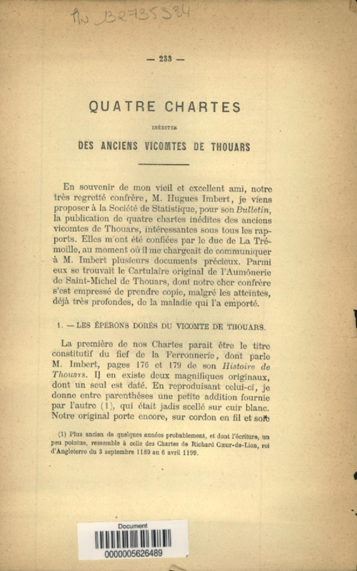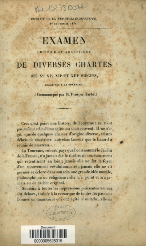 Examen critique et analytique de diverses chartes des Xe, XIe, XIIe et XIIIe siècles, relatives à la Touraine