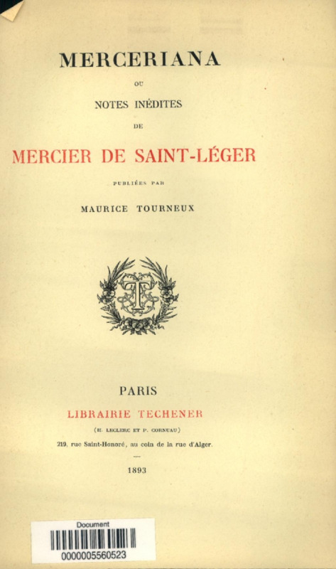 Merceriana ou notes inédites de Mercier de Saint-Léger : publiées par Maurice Tourneux