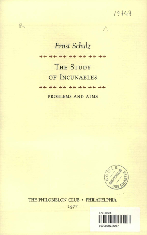 The study of incunables : problems and aims