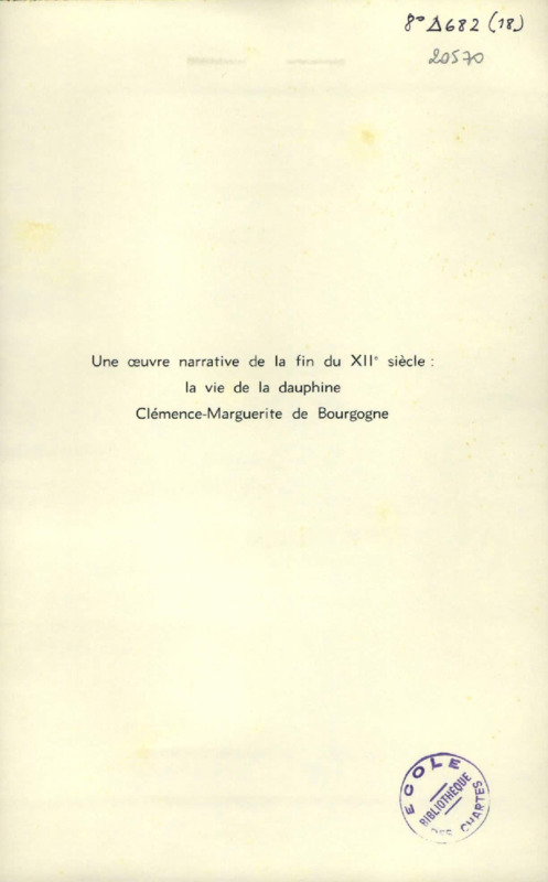 Une oeuvre narrative de la fin du XIIe siècle : la vie de la dauphine Clémence-Marguerite de Bourgogne