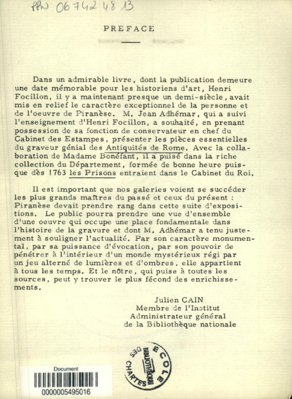 Piranèse : [exposition] Paris, Bibliothèque nationale, 1962