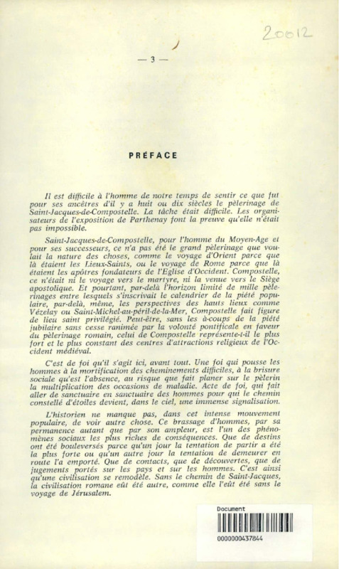 Recueil commémoratif de l'exposition : Parthenay, le Poitou, l'Aunis, la Saintonge, l'Angoumois et le pèlerinage de Saint-Jacques de Compostelle "de nos jours au XIIe siècle" [Parthenay, 1976]