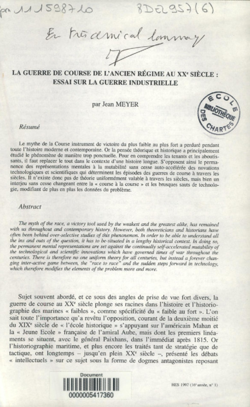 La guerre de course de l'Ancien Régime au XXe siècle : essai sur la guerre industrielle