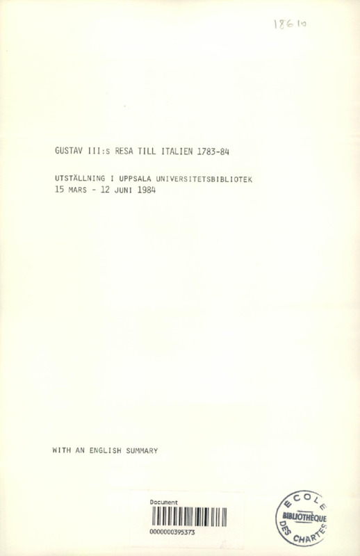 Gustav III:s resa till Italien, 1783-84 : utställning i Uppsala universitetsbibliotek 15 mars-12 juni 1984