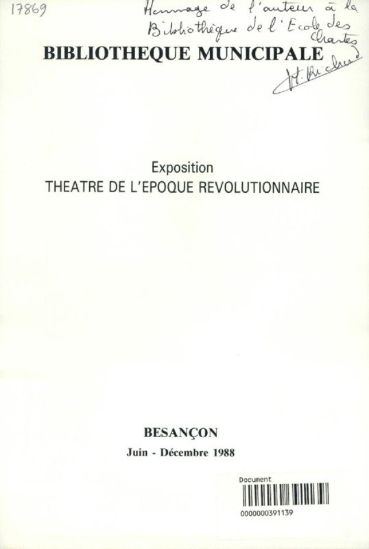 Exposition [bibliothèque municipale de Besançon, juin à décembre 1988] : théâtre de l'époque révolutionnaire