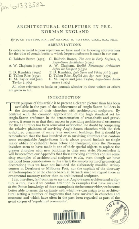 Architectural Sculpture in Pre-norman England