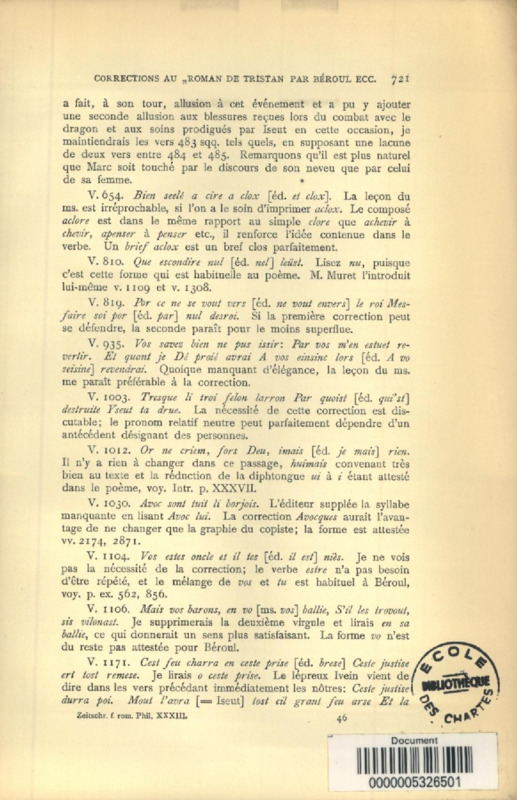 Corrections au "Roman de Tristan par Béroul et un anonyme", publié par M. E. Muret