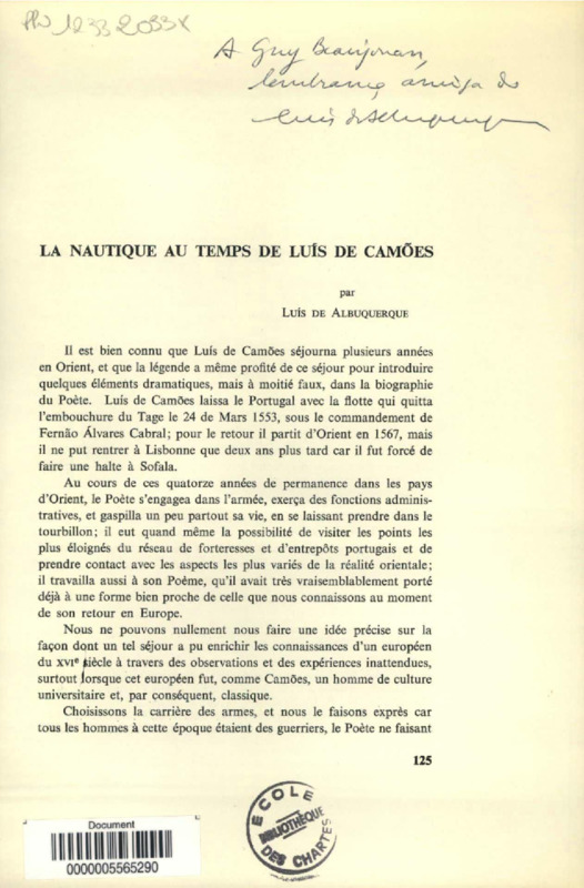 La nautique au temps de Luis de Camoes