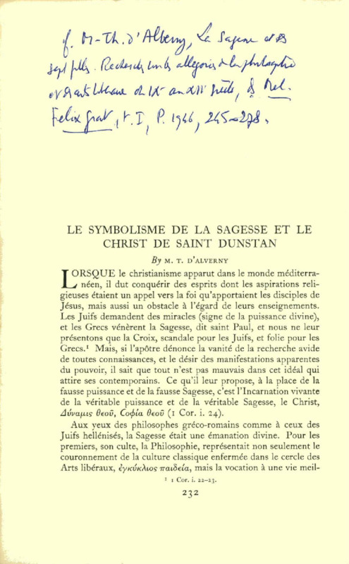 Le symbolisme de la sagesse et le Christ de Saint Dunstan