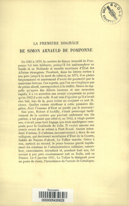 La première disgrâce de Simon Arnauld de Pomponne