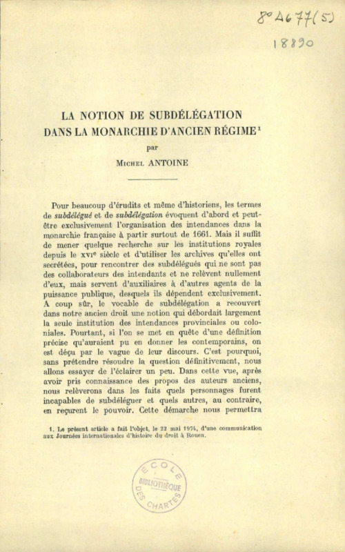La notion de subdélégation dans la monarchie d'Ancien Régime