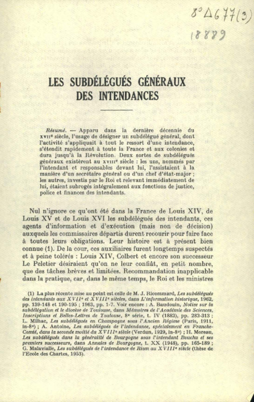 Les subdélégués généraux des intendances