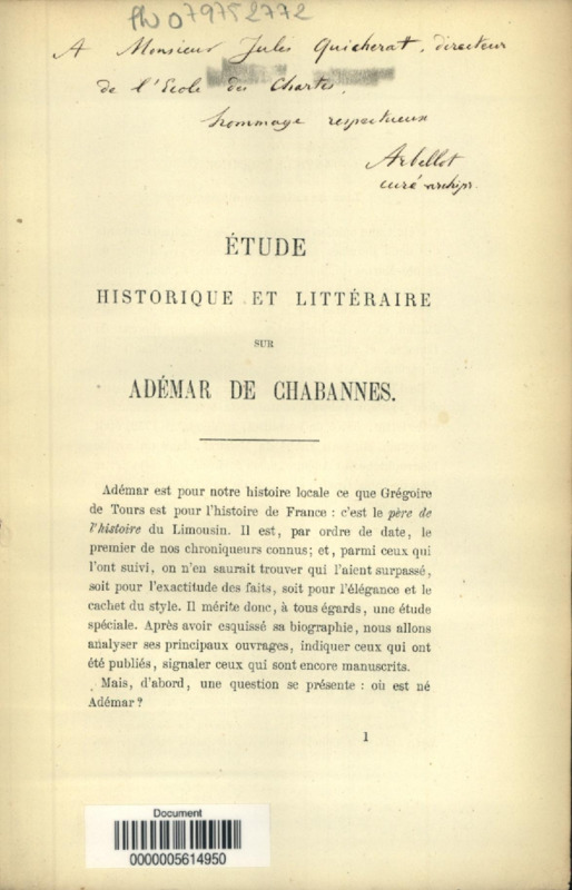 Documents inédits sur l'apostolat de saint Martial, et sur l'antiquité des églises de France