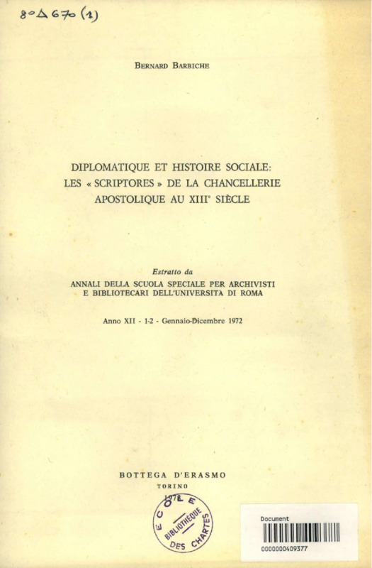 Diplomatique et histoire sociale : les "scriptores" de la chancellerie apostolique au XIIIe siècle
