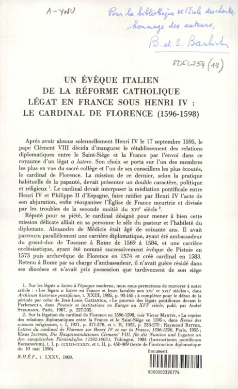 Un évêque italien de la Réforme catholique légat en France sous Henri IV : le cardinal de Florence (1596-1598)