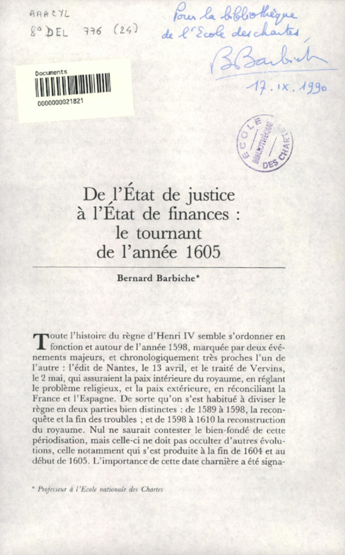 De l'Etat de justice à l'Etat de finances : le tournant de l'année 1605