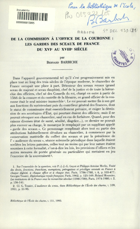 De la commission à l'office de la couronne : les gardes des sceaux de France du XVIe au XVIIIe siècle