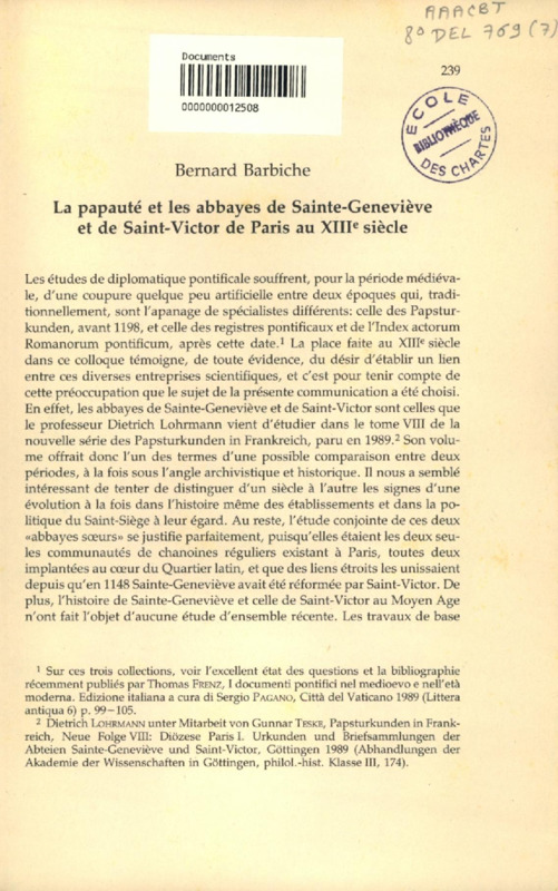 La papauté et les abbayes de Sainte-Geneviève et de Saint-Victor de Paris au XIIIe siècle