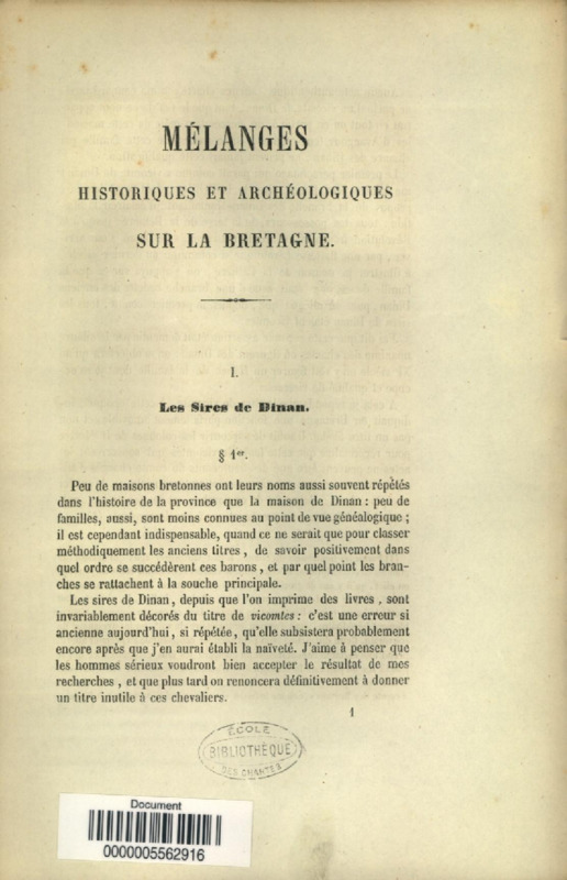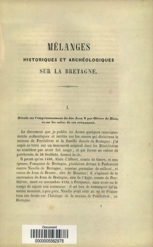 Mélanges historiques et archéologiques sur la Bretagne