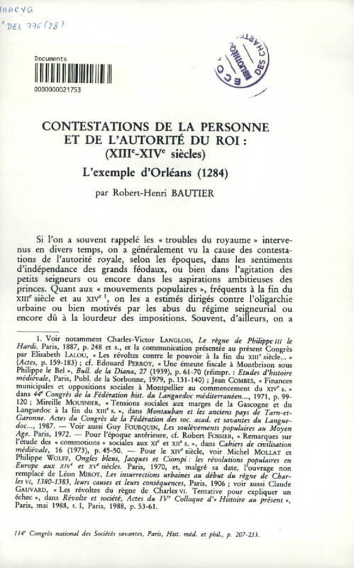 Contestations de la personne et de l'autorité du roi (XIIIe-XIVe siècles) : l'exemple d'Orléans (1284)