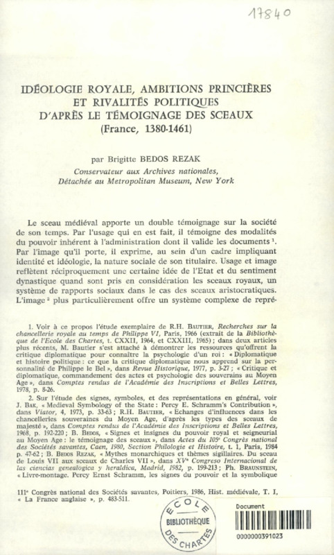 Idéologie royale, ambitions princières et rivalités politiques d'après le témoignage des sceaux : (France, 1380-1461)